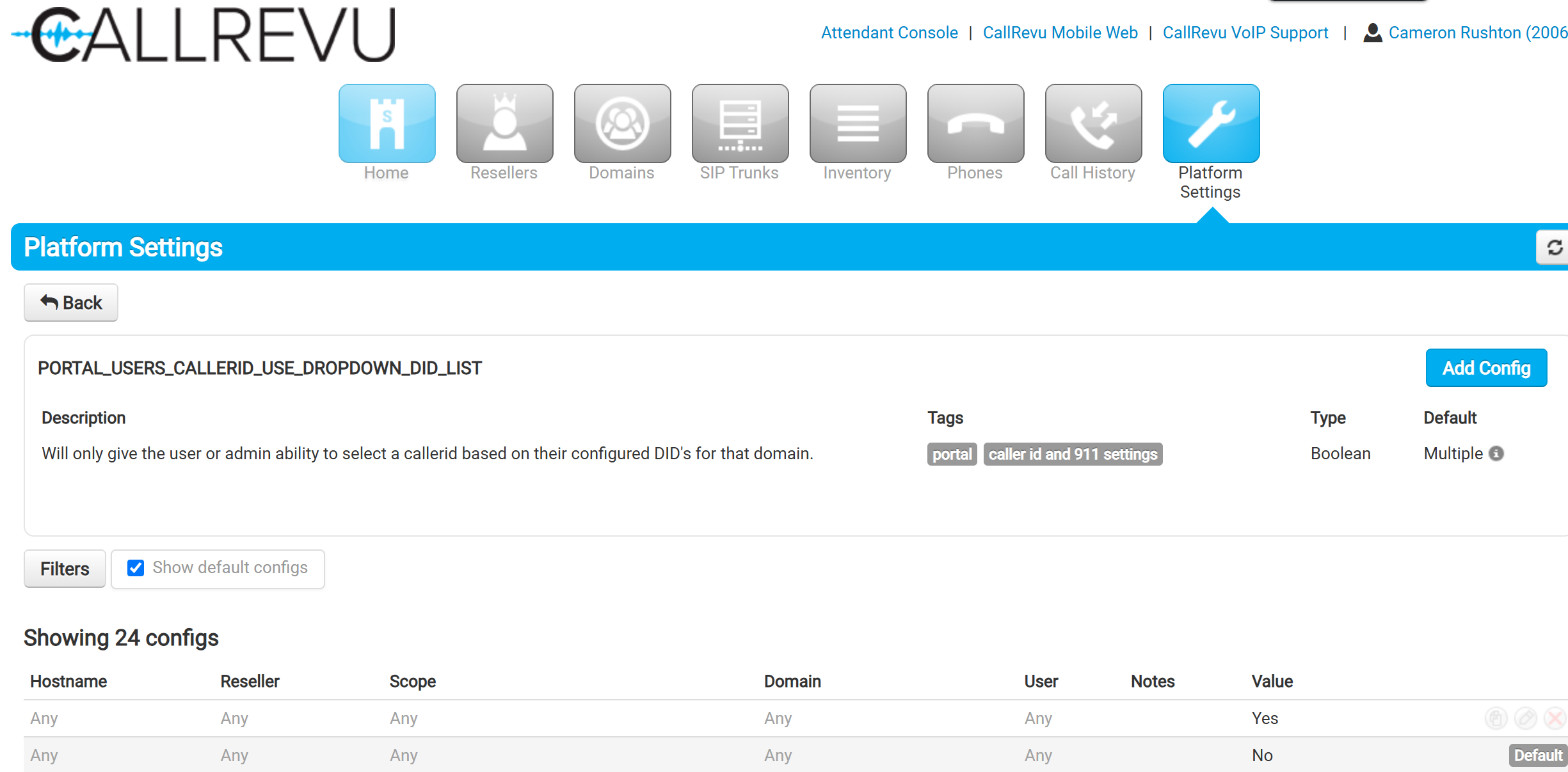 you can get around this by setting PORTAL_USERS_CALLERID_USE_DROPDOWN_DID_LIST to 'no' in the platform settings. This will give you a field to enter the number instead of a long drop-down.