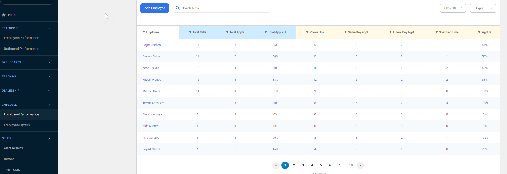 I see same day appt is a number not at %. Can you reclarify if you are talking about the EMPLOYEE>Employee Performance Report> column same day appt